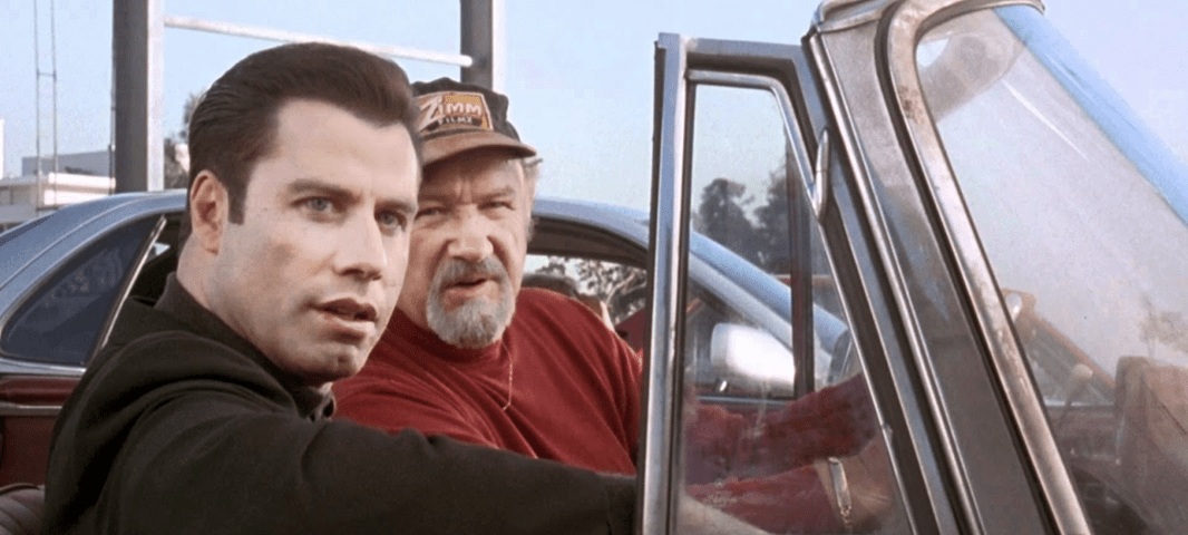 In Get Shorty, John Travolta plays Chili Palmer, a cool but second-rate mob collector with a love of old movies; he’s dispatched to retrieve a gambling debt from Gene Hackman’s Harry Zinn, a similarly two-bit producer of schlocky horror fare. Harry had been borrowing from loan sharks – and giving them producing credits – on his screamfests, but he took his last loan to Vegas in a failed attempt to parlay it into seed capital for his masterpiece: “Mr. Lovejoy”. In addition to Chili’s calling on the casino’s marker, the loan sharks are after Harry as well. Chili senses a win-win – preventing Harry’s legs from getting broken gets Chili into the movie business – and he agrees to meet with Harry’s “investors”.